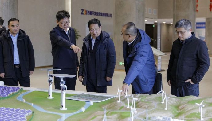 马之伟一行还参观了西藏开投集团能源基地一楼展厅,详细了解了开投集团在安多光热项目、清洁能源供暖项目、电解槽制氢技术、光伏组串式逆变器应用及清洁能源产业布局等方面的进展与成果。